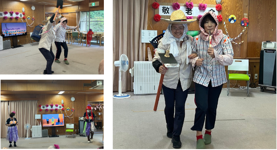 いきいきライフ協会 > おさるの掲示板 > 9月/さるびのデイのお家 公開日 2025.09.25 9月/さるびのデイのお家 【敬老会ウイーク】 敬老の日に大笑いして力を蓄えていただこうと、職員が一肌脱いでパフォーマンスに挑戦しました。 写真上は「オヨネーズ」に扮した「麦畑」の様子。誰かわかりますか?(笑)。フラダンスにも挑戦し、笑顔溢れる楽しい敬老会になりました。 【大作が完成しました!】 利用者のみなさんと、少しずつ制作を続けていた「子延びの水車」をイメージした作品が完成しました。 これからも利用者さんと一緒に、工夫を凝らした作品作りにも挑んでいきます。